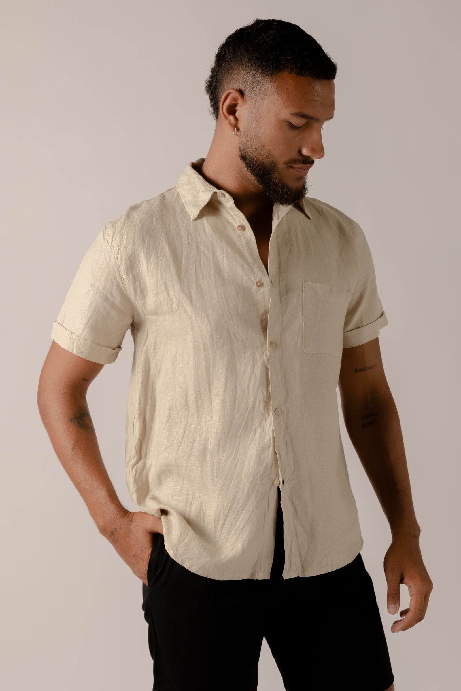 Loose fit Raw Linen shirt with buttoned collar